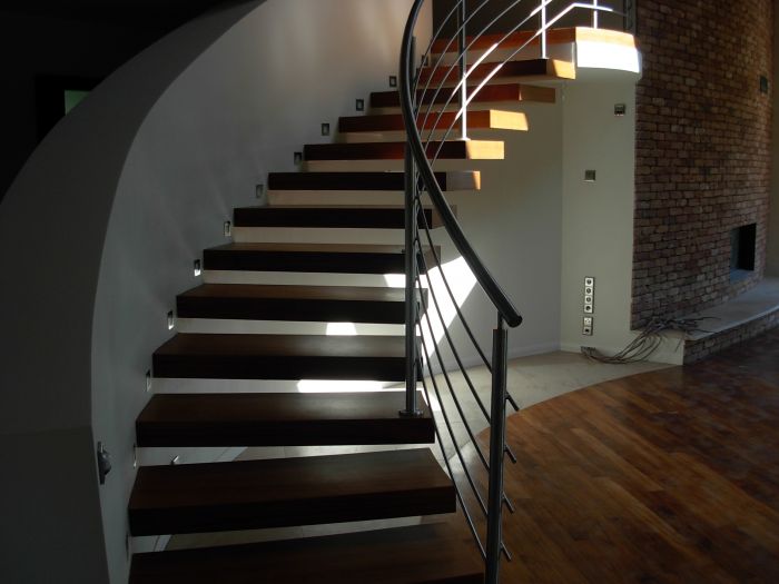 Schody o konstrukcji samonośnej wykonujemy techniką stosowaną od wielu pokoleń.Jest to specyficzne złącze łączące stopień do konstrukcji nośnej schodów.Schody wykonane taką techniką gwarantują wieloletnie użytkowanie bez skrzypienia, dużą estetykę.Nie skręcamy schodów na śruby, pręty, wkręty itp.Technika wykonania schodów jest tak pracochłonna i specyficzna że już nie spotykana u konkurencji.